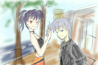 | 〜8月22日〜 GM 次の日。 シューズ シュークリームだ。食えオペル。 オペル がつがつ・・・!! GM 吐いた。珍しい、オペルが吐くなんて。 ハリーP 精神的に来てるらしい。 GM ウジウジとポケットに潜り込んで、丸まっちゃった。 ハリー 買い物! 新しい服を買いに行こう。ふくふく。 GM 上下で500$。 ハリー たけー!!つらいよ…。 シューズP 目立つよな、いいふく着てると。 GM 例えば、今、坂を登ってる、黒服の2人みたいに。…小学生っぽい、男の子と女の子。駅前の近くを歩いている。 ハリー つけ尾行る。 GM いきなりつけるか? ハリー めずらしいな…。ちょっと待てい! GM ちょっと背の高い、男の子の方が振り向く。