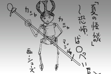 | ハリー 回復してく? オレ、42分も休まなきゃならねーぞ。 シューズ 食うもんがない。 ハリー 持ってるけど。ミルクティーならあるぞ。飲む? シューズ 飲んでおく。 ハリー オレが飲ませてやる。飲め飲め!! キッド サラミサラミ…。 ハリー オレは歩いてれば回復するだろ…よし。開けろ! GM 開けると、かなり広い部屋になってまして、見るからに番兵君の親玉って感じの、ひとまわり大きい番兵君がいる。そのまわりに、αとβとγが1体づつそれぞれいる。 ハリー おれ残り5点しかHPがないよ。 シューズ 親玉くんは? GM 胸に「コマンダー001揚ZΩ」って書いてある。クワガタの角とカブトムシの角とカミキリムシの触覚を持ってる。大人ぐらいあるから。 ハリー 無駄だ! メル なーんでこう、この町に住んでる人は無駄なものを創りたがるのかしら? キッド オメガ!? 見るからに親玉。 ハリー 誰だよ、開けろって言ったの! オレだけど…。 マルス あー、美しくない美しくない。 がんばって戦え! |