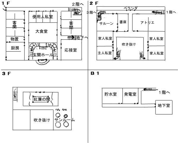 発電室とかのことも、この屋敷では、外から電力引かない独立したシステムになってるから、地下にそんなのがあるんだー、とか聞いたって事で。